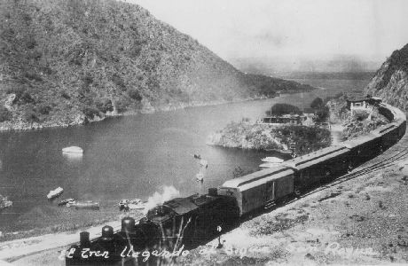 Tren en la Estación Casaffousth, que servía al Dique San Roque (circa 1910)
