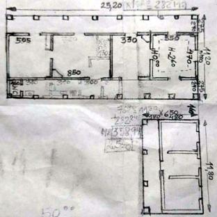 El primer cuerpo es un conjunto de 4 habitaciones en norte-sur con puertas hacia 2 galerías al este y al oeste, con un ancho total de 11,20 MT. y un largo de 25,20 MT., que dan un total de 282,24 m2. Un sotano de 2,60 metros de profundidad y aproximadamente 4x4 metros se encuentra debajo de la habitación norte, y su techo, de madera encastrada, sirve tambien como piso de la habitación.