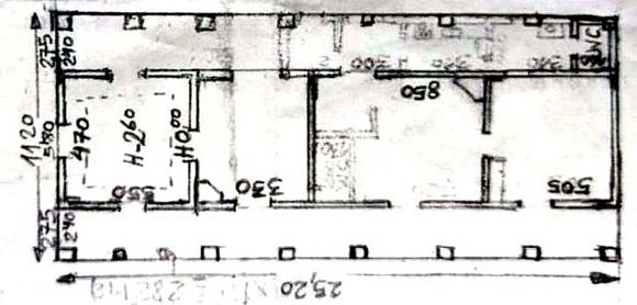 El cuerpo de las habitaciones tiene 5,80 MT. de ancho por 25,20 MT., y las 4 habitaciones tenían puertas o ventanas hacia la galeria oeste y tambien puertas o ventanas hacia la galeria del este, las 4 se se comunican por puertas en su parte media. La habitación del lado norte tiene un sótano inferior y una ventana hacia el norte.