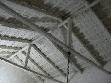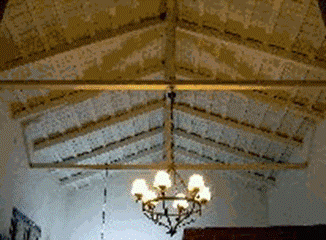 Detalles del techo de madera, con refuerzos de hierro  FFCC y ladrillos en  estancia principal.