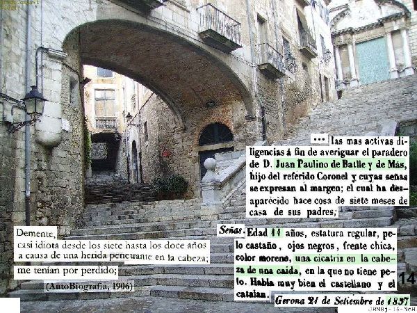 Habiéndose encontrado un segundo nombre: Paulino, es que se incorpora dicho nombre en las búsquedas, y cuando se focaliza en “Juan + Paulino + Camilo” se encuentra este documento: “… Camilo Francisco Batlle … busca averiguar el paradero de D. Juan Paulino de Batlle y de Mas …1857… Edad 11 años … una cicatriz en la cabeza de una caida … habla muy bien el castellano y el catalán ….”