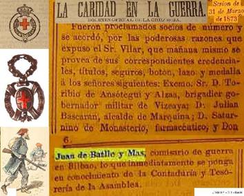 Buscando “Juan Batlle y Mas” en la revista Caridad en la Guerra, en archivo en la sede madrileña de la Cruz Roja Española, consta que el 31 de Marzo de 1873 el tal Juan de Batlle y Mas había recibido de “La Cruz Roja” la medalla “Caridad en la Guerra”.
