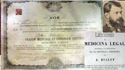 Juan Bialet Massé recibió en la Universidad Nacional de Córdoba su Licenciatura en Derecho y Título de Abogado en 1879. Posteriormente, profesor a cargo de la Cátedra de Medicina Legal y Toxicología, y recibió Diploma de Doctor Honoris Causa en la Facultad de Medicina de la UNC en 1885.